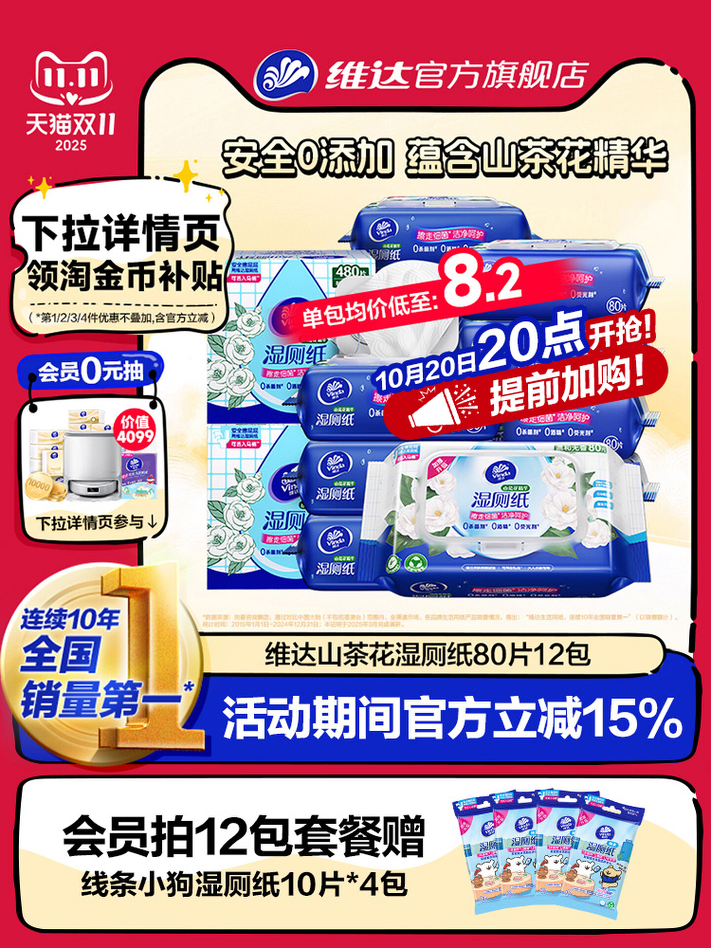 【孙颖莎推荐】维达山茶花湿厕纸厕纸80片厕所家用女性女士湿纸巾
