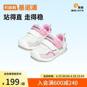 基诺浦(ginoble)宝宝步前鞋 25春婴儿软底透气地板鞋8-18个月春秋款学步鞋GB2391 棉白/杏仁粉/夜影蓝 19.5 120mm 适合脚长116-124mm