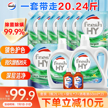 威露士清可新洗衣液柠檬香20.24斤(瓶2L+1L+袋1L*7+消毒液60ml*2)除螨