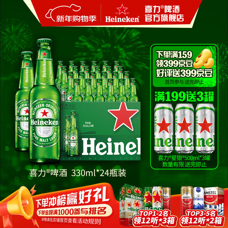 喜力 经典风味啤酒 整箱装 全麦酿造 原麦汁浓度≥11.4°P 330mL 24瓶