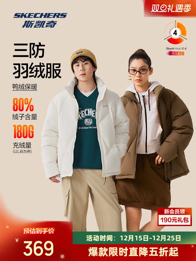 斯凯奇短款羽绒服2025冬男女同款保暖防泼水防泼油耐污三防外套