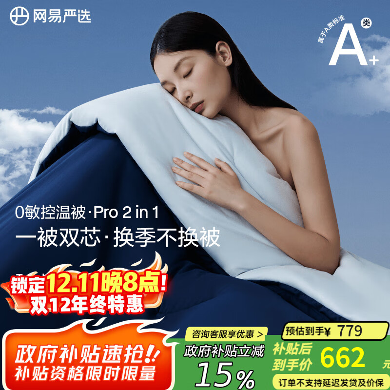 网易严选0敏控温被二合一proA类抑菌深睡被可机洗空调被透气被子被芯 【双芯控温Pro】二合一被 220cm*240cm(适合1.8m床) 严选品质