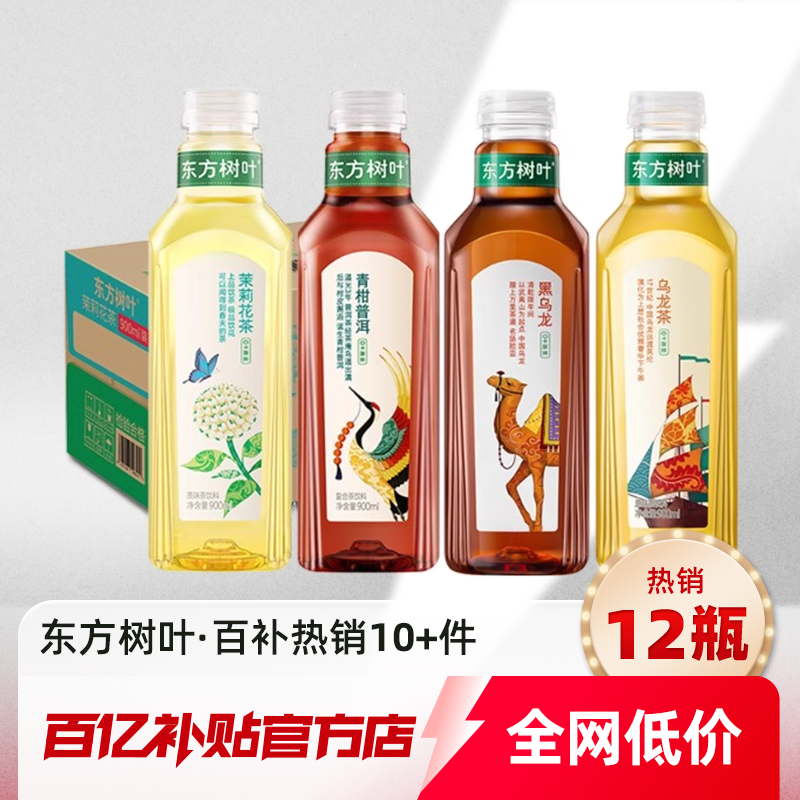 农夫山泉东方树叶无糖茉莉普洱青柑乌龙茶900ml*6/12瓶饮料正品