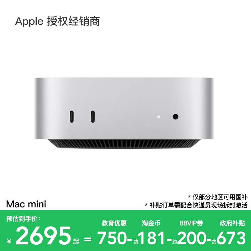 【政府补贴叠加教育优惠】 Apple/苹果 Mac mini 电脑一体机 2024款 M4/M4 Pro芯片 优惠直降 官方正品 国补