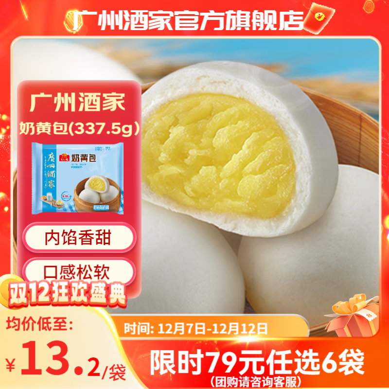 广州酒家早餐食品儿童面点 手抓饼包子饺子馒头烧麦虾饺 半成品生鲜速食 奶黄包337.5g(9个装)