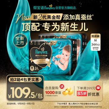 帮宝适【新生儿顶配】黑金帮纸尿裤添加真蚕丝M68片 夏天尿不湿尿裤