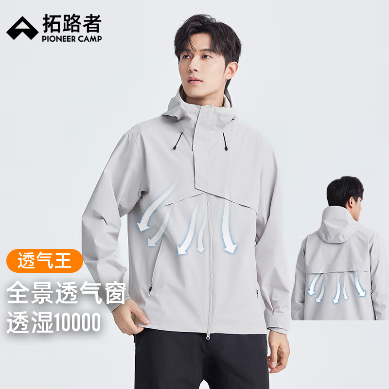 拓路者(Pioneer Camp)透气王冲锋衣男春秋款户外旅行防水防风外套硬壳活页透气登山服 浅灰色【尺码偏大】 XL