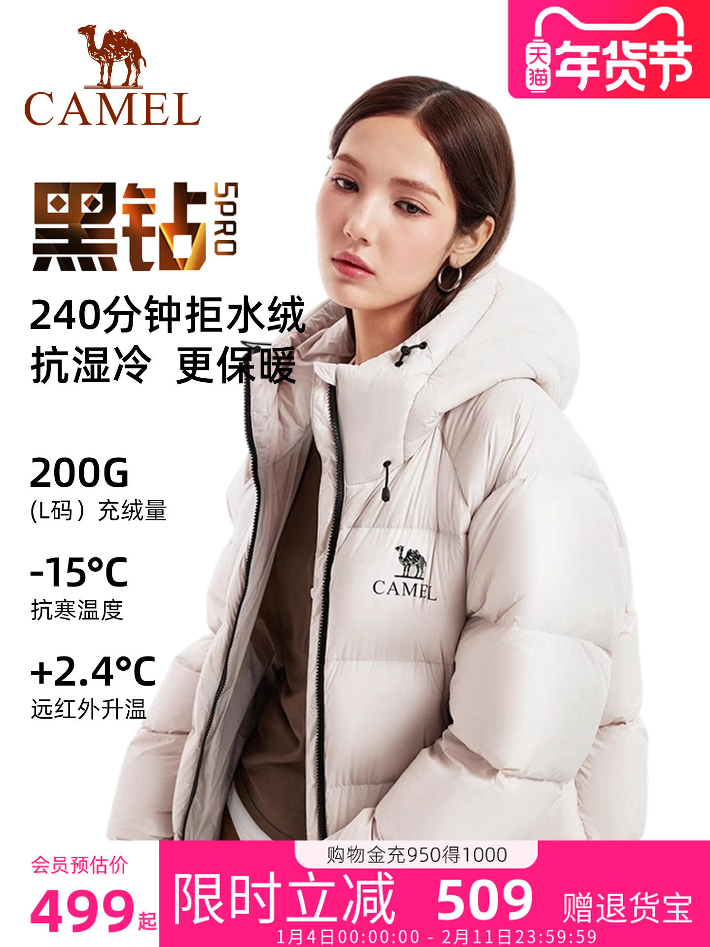 旗舰店骆驼黑钻5PRO羽绒服2025冬季新款男女款防风加厚保暖外套面包服女