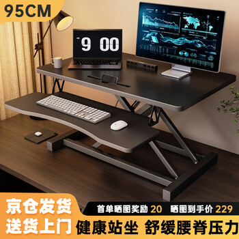 旗舰店甄严选升降电脑桌升降台立式办公书桌工作台显示器升降支架台式工作桌子 【尊享大尺寸】曜石黑95CM双层款