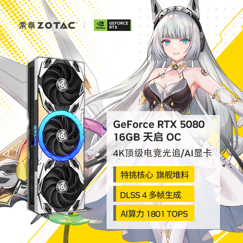 自营索泰(ZOTAC)GEFORCE RTX 5080 16GB 天启 OC 白色 三风扇 DLSS4 全新游戏独立显卡 黑神话悟空