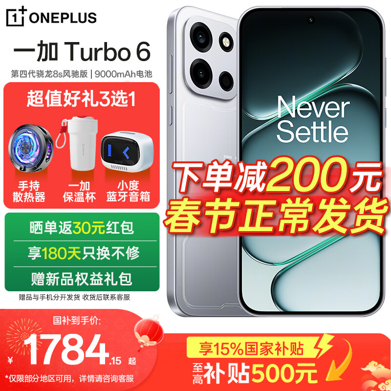 旗舰店一加 【国家补贴减15%】一加 Turbo 6 新品智能手机 165超高刷电竞东方屏 电竞三芯 9000mAh 冰川电池 追光银 12GB+256GB 官方标配【壕礼3选1+全国联保】