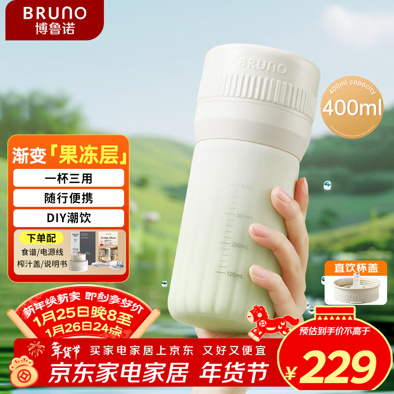 自营BRUNO小冰纷榨汁杯果冻杯果汁机无线便携小型家用多功能可碎冰旅行果蔬保温料理机双杯盖象牙白国家补贴