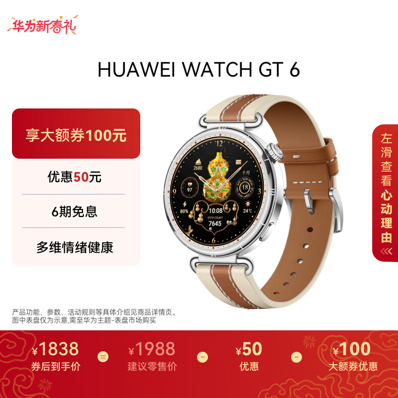 自营HUAWEI WATCH GT 6 马鞍棕 41mm 智能手表多维情绪健康全新骑行体验华为GT6手表GT5升级