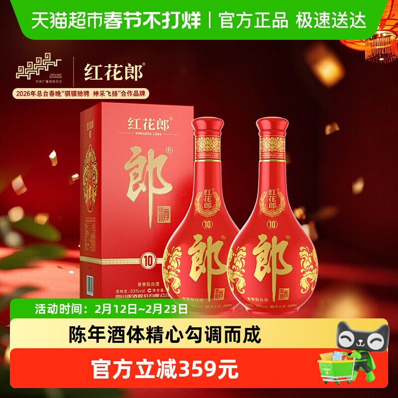 郎酒红花郎(10)酱香型白酒53度500ml*2瓶红十正品送礼喜宴口粮酒