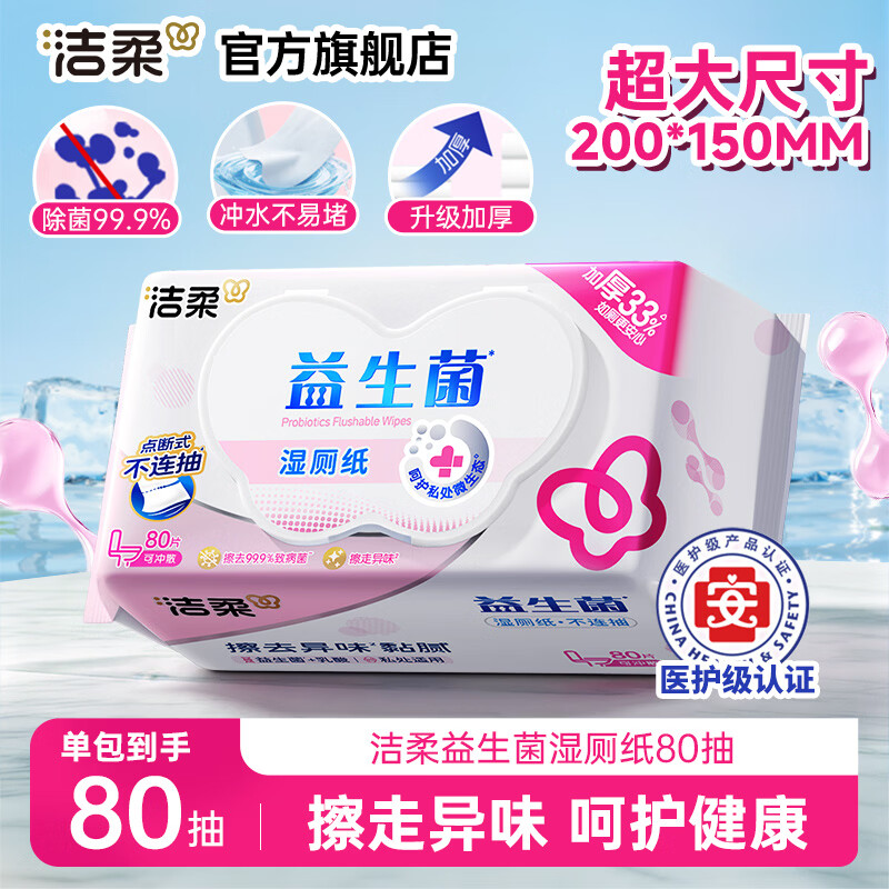 旗舰店洁柔益生菌湿厕纸80片/包 温和洁净纯水湿巾厕纸易冲散带盖 80抽*1包