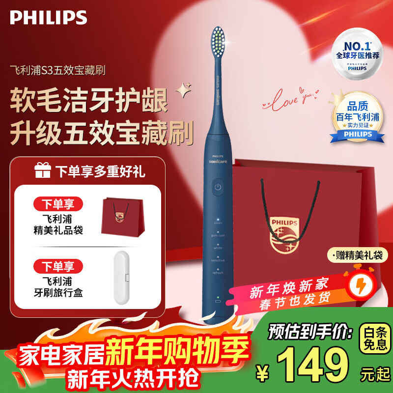 旗舰店飞利浦(PHILIPS)电动牙刷官方旗舰正品牙医推荐情侣款护龈软毛清洁成人声波自动牙刷送男友送女友礼物 情人节礼物 HX2471/01深藏BLUE