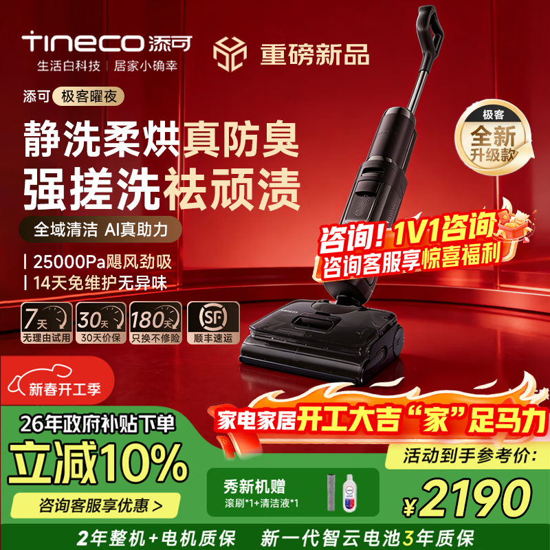 旗舰店添可洗地机芙万极客曜夜AI真助力【祛顽渍14天无异味25Kpa暴风吸】0缠毛躺平拖地机吸拖一体扫地机器人 极客曜夜 【26年重磅新品首选】