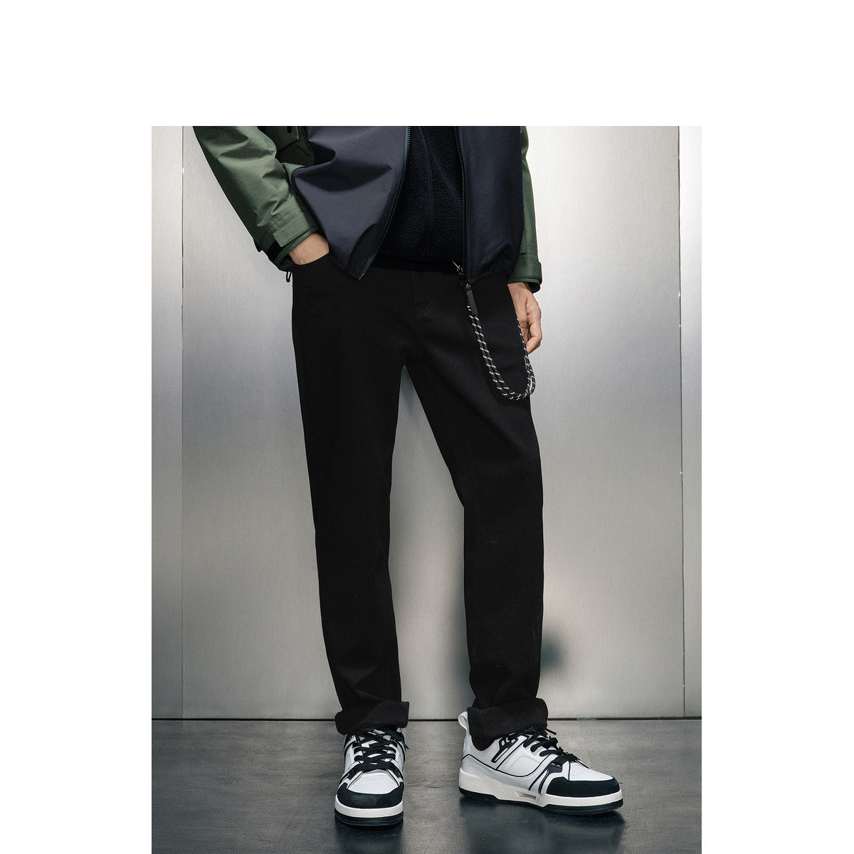 冬季GXG男装黑色直筒牛仔长裤男简约百搭通勤牛仔裤