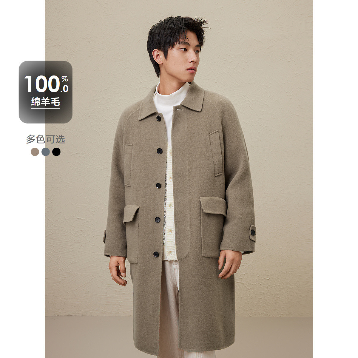 【纯羊毛】冬季GXG男装简约通勤质感保暖羊毛长款大衣外套男