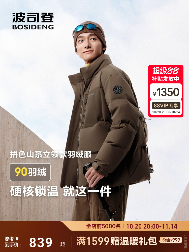 旗舰店波司登2025冬季新款男士羽绒服时尚运动立领拼色山系保暖面包服