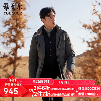 旗舰店雅戈尔(YOUNGOR)羽绒服男立领连帽长款羽绒服锦纶氨纶耐穿舒适透气新年穿搭 VRYL439982QQA绿色 L 175/96A