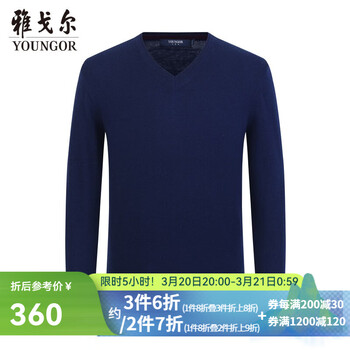 旗舰店雅戈尔(YOUNGOR)羊毛衫男全绵羊毛羊毛衫舒适暖和厚度适中 VYQW639998HVA蓝色 S 95c