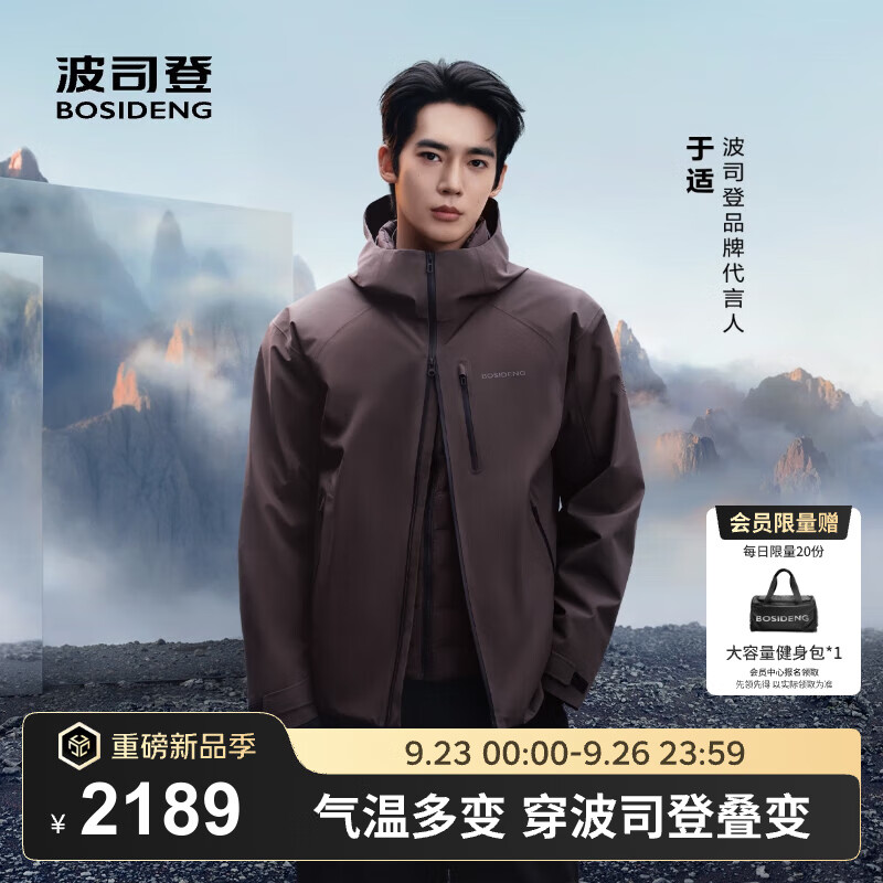 旗舰店波司登(BOSIDENG)明星同款叠变25款鹅绒机能冲锋衣羽绒服男三合一外套B250331313 钙土棕7C72 M 175/96A 体重约130-140斤