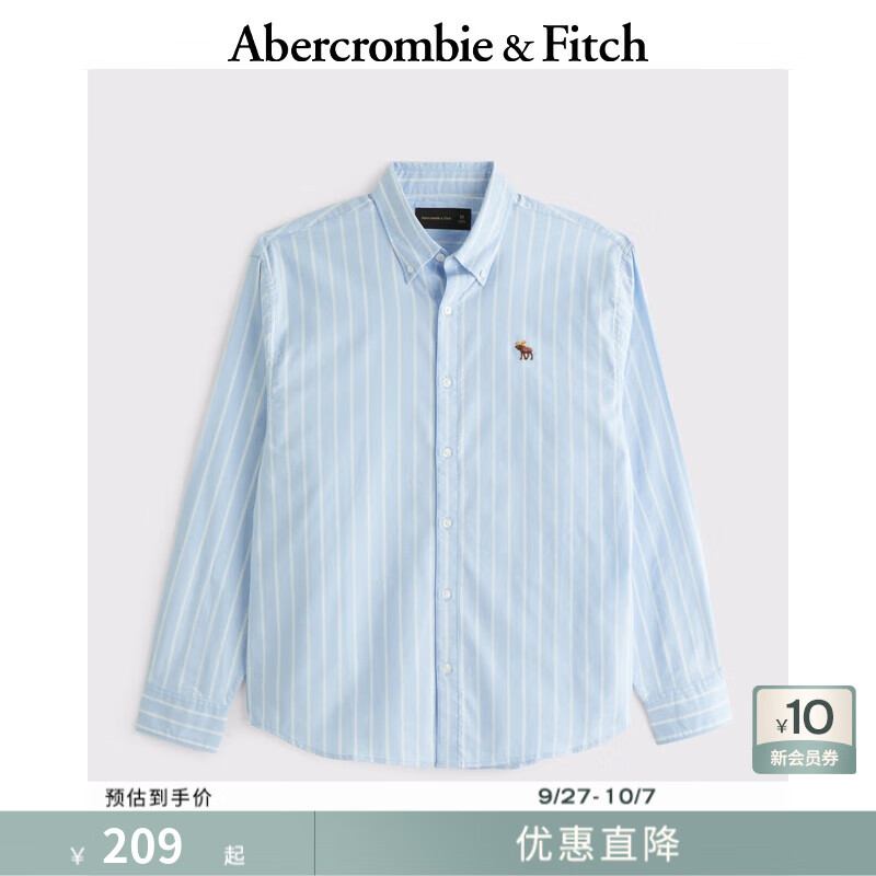 旗舰店Abercrombie & Fitch【牛津衬衫】经典小麋鹿图案男装25春夏美式长袖衬衫125-5083 蓝色宽条纹 2XL (185/124A)