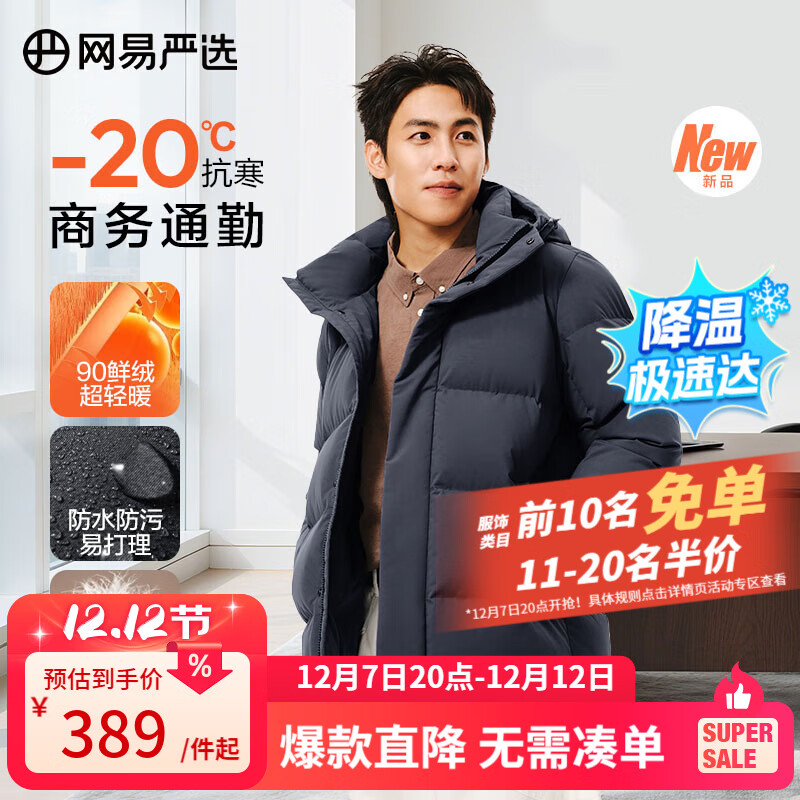 旗舰店网易严选25新品90鲜绒轻暖面包服羽绒服男通勤商务-20℃抗寒无氟防水防污 通勤轻商务-海灰蓝 XL