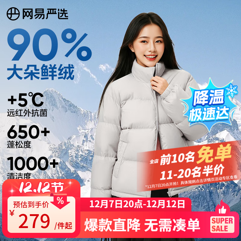 百亿补贴网易严选25新品90鸭绒超蓬羽绒服休闲面包服石墨烯保暖轻量抗菌防泼水 A款25迭代-静谧黑(立领) L