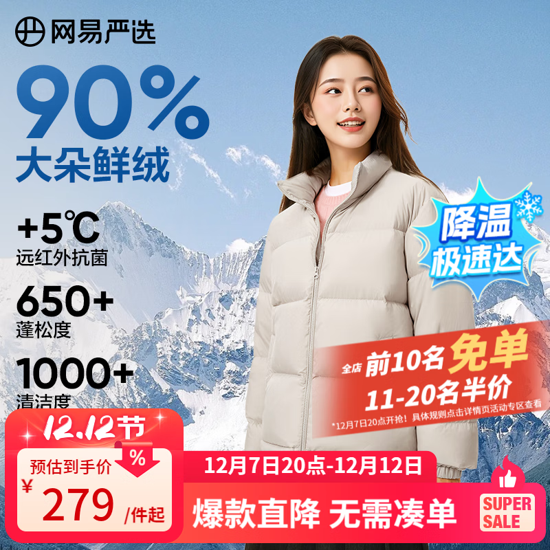 旗舰店网易严选25新品90鸭绒超蓬羽绒服休闲面包服石墨烯保暖轻量抗菌防泼水 25秋冬立领-卡其米 L