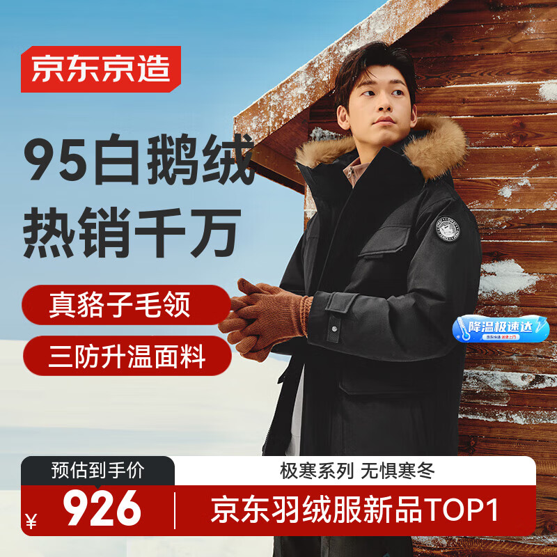 自营京东京造【进口极寒95鹅绒服】羽绒服男外套女冬季新款中长款 曜石黑 XL