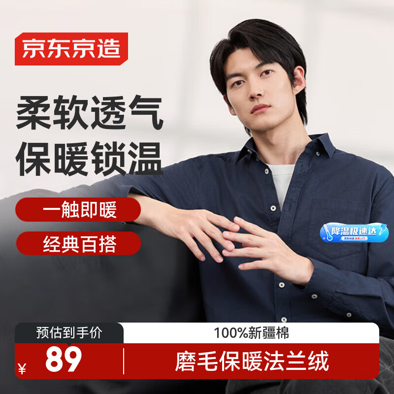 自营京东京造【法兰绒】衬衫男长袖衬衫休闲男衬衫外套秋冬 藏青色 42