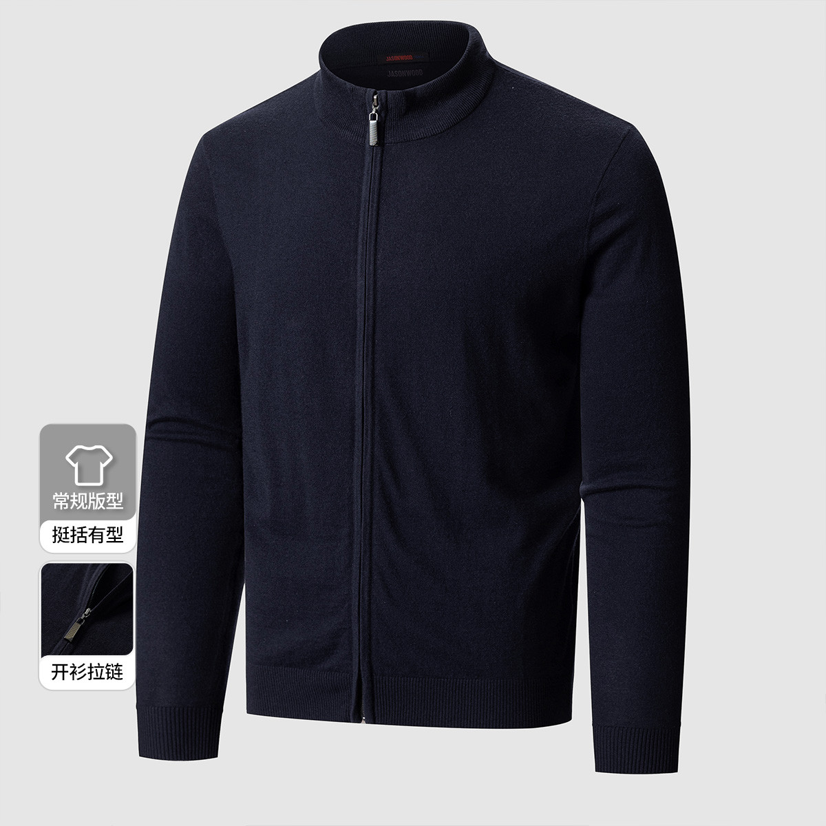开衫男士羊毛衫秋冬季新款立领纯色柔软亲肤休闲简约保暖上衣外套