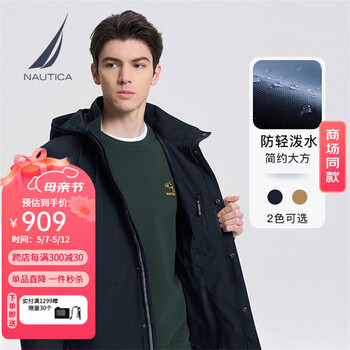 旗舰店诺帝卡(NAUTICA)【商场同款】男装春夏款防轻溅水可拆卸帽薄夹克外套男JO3107 藏青4NV(231) XL