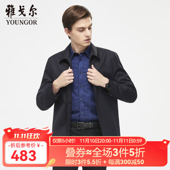 雅戈尔风衣男士优质聚酯纤维面料羽绒风衣商务翻领经典款2025新品合款 藏青VYYF419865FFA L 175/96A (推荐130-150斤)
