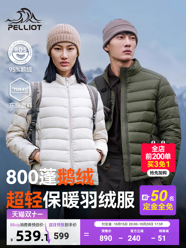 旗舰店【双11预售】伯希和排骨羽绒服男800蓬鹅绒女轻薄连帽冲锋衣内胆