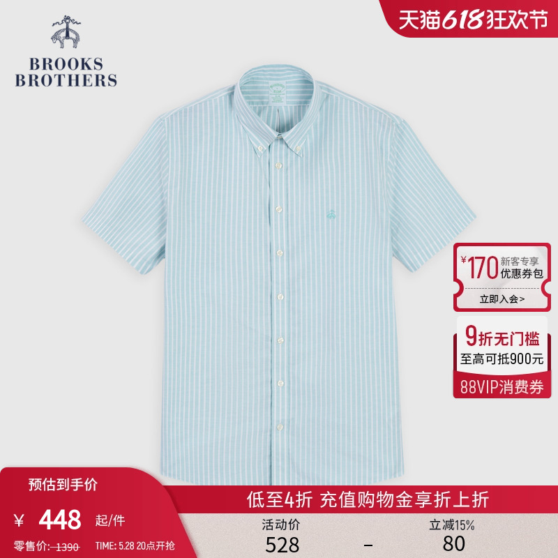 旗舰店Brooks Brothers/布克兄弟男士春夏款牛津纺条纹短袖休闲衬衫
