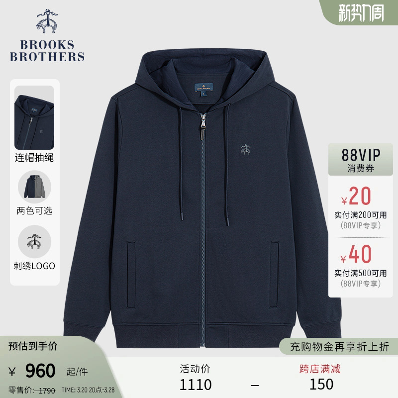 旗舰店Brooks Brothers/布克兄弟男春夏季款连帽抽绳拉链休闲卫衣外套