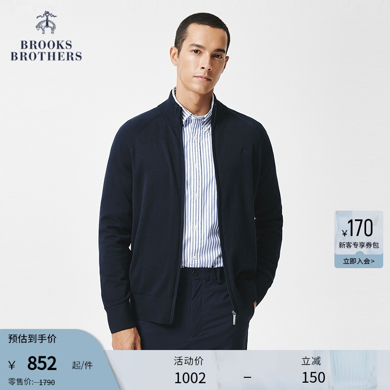 旗舰店Brooks Brothers/布克兄弟男士春夏季款纯棉休闲毛衣外套拉链开衫