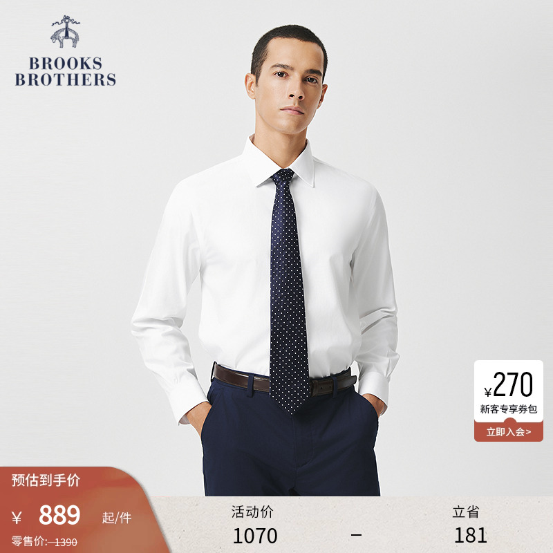 旗舰店[易打理]Brooks Brothers/布克兄弟男免烫纯棉细点牛津纺正装衬衫