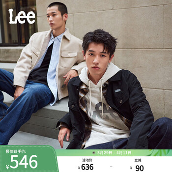 旗舰店Lee舒适版Y2K翻领男尼龙长袖骑士夹克外套LMT0090222RZ 黑色 M