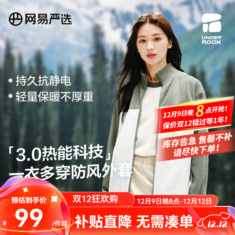 旗舰店网易严选【24秋冬】摇粒绒外套冲锋衣内胆抓绒衣保暖珊瑚绒夹克城市轻户外 [24秋]摇粒绒(短绒)-旷野绿拼接女 L