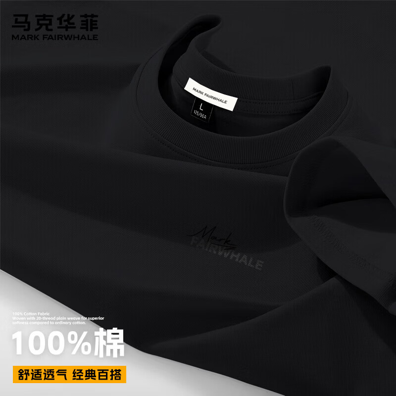 旗舰店马克华菲(MARK FAIRWHALE)简约印花短袖T恤男情侣款夏季宽松柔软亲肤不闷汗基础款百搭上衣 【棉】-黑#JMK反差字 XL