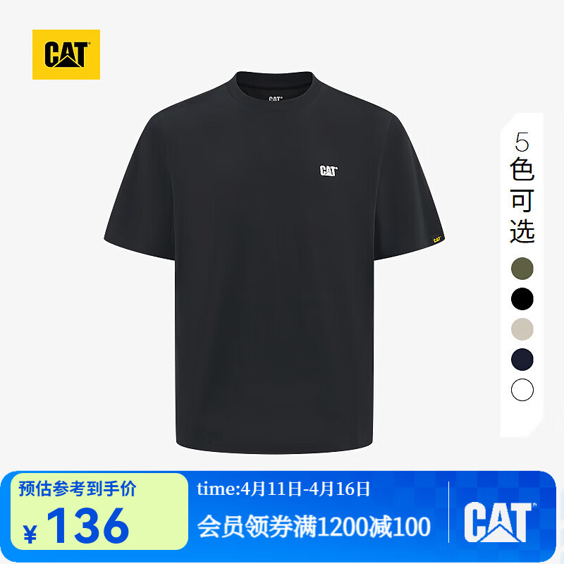旗舰店卡特(CAT)新品男士户外经典款双色厚版发泡印花短袖T恤 黑色 XL