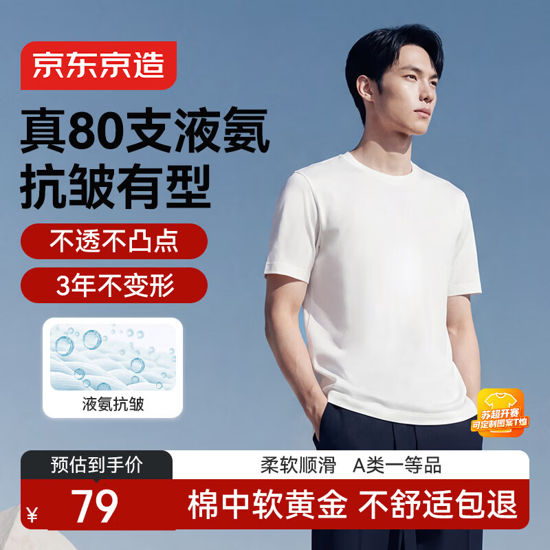 自营京东京造80支液氨短袖男士t恤打底衫内搭春季新款男装衣服轻奢抗皱 白XL