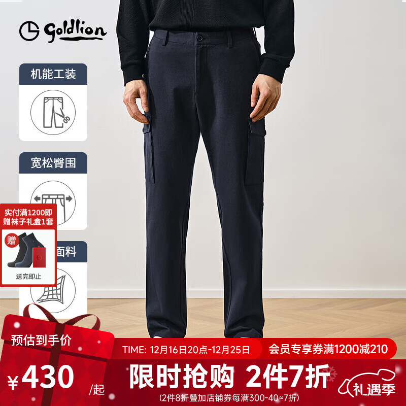 旗舰店金利来【四面弹】2024秋冬新款休闲工装裤男多口袋橡筋腰直筒长裤子 藏蓝-95 34