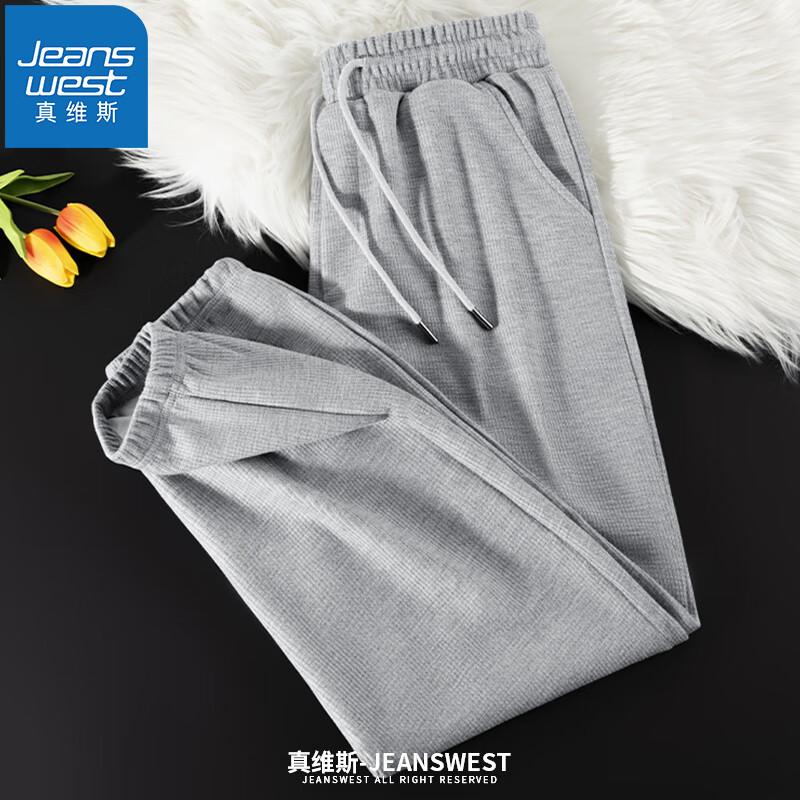 旗舰店真维斯(JEANSWEST)秋冬季新品华夫格长裤宽松舒适运动健身休闲裤子潮流简约纹理长裤 灰色 XL(推荐130-145斤 )