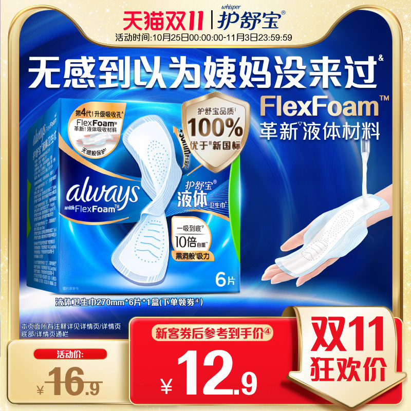 旗舰店【顶配无感】护舒宝液体卫生巾日用量多超薄6片姨妈巾官方旗舰店