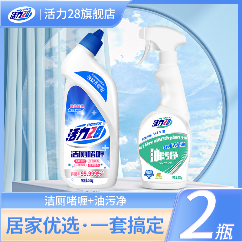 旗舰店活力28新客尝鲜组合洁厕剂除垢去污+厨房油污净家用油污克星西柚